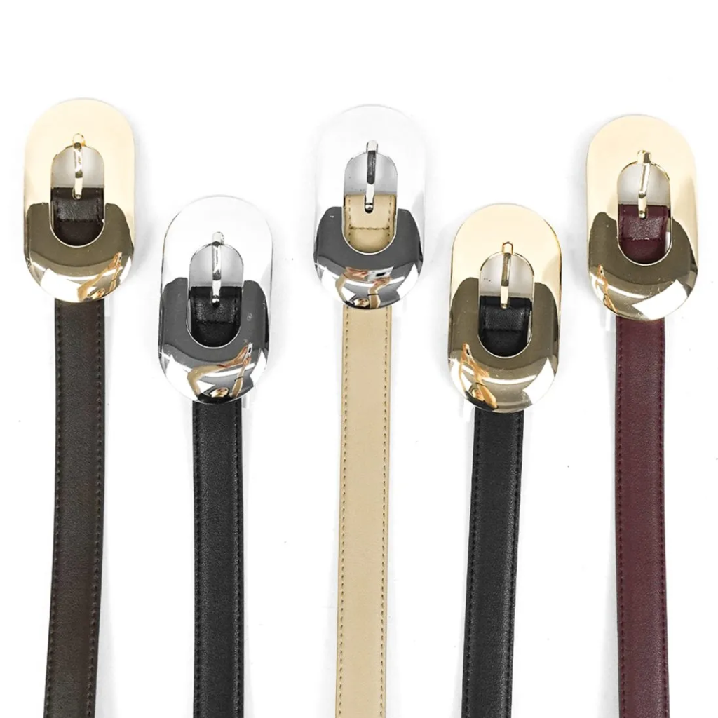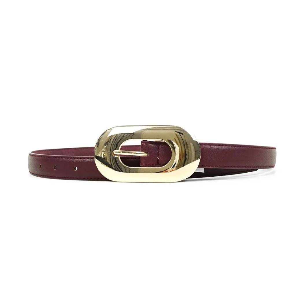 CINTO ECOCUERO HEBILLA BORDES REDONDEADOS METALIZADA - BORDO