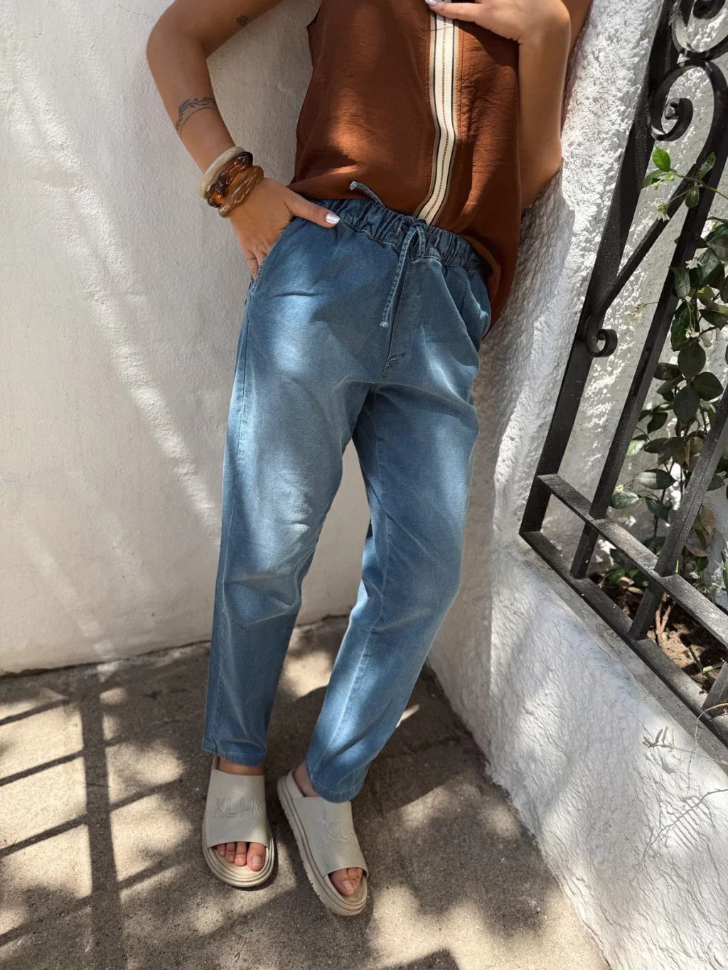 JEANS CON TIRAS EN CINTURA