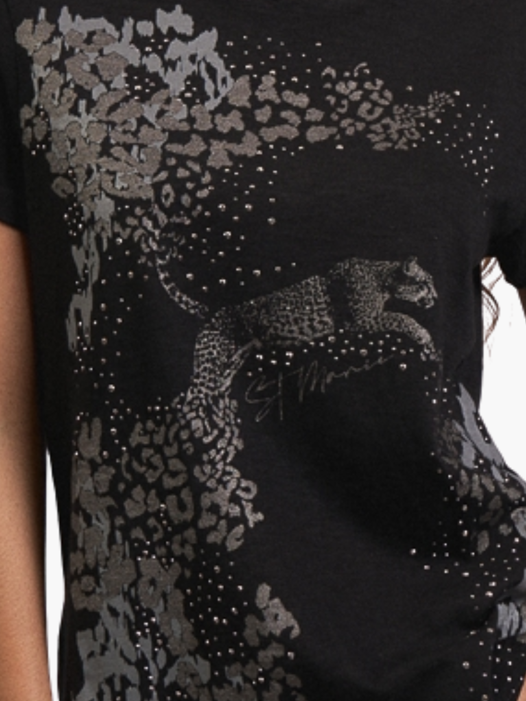 Remera de flame, escote y manga clásica, con estampa personalizada y detalle de hotfix.Composición: 100% Algodón. Color NegroMARCA: ST. MARIE