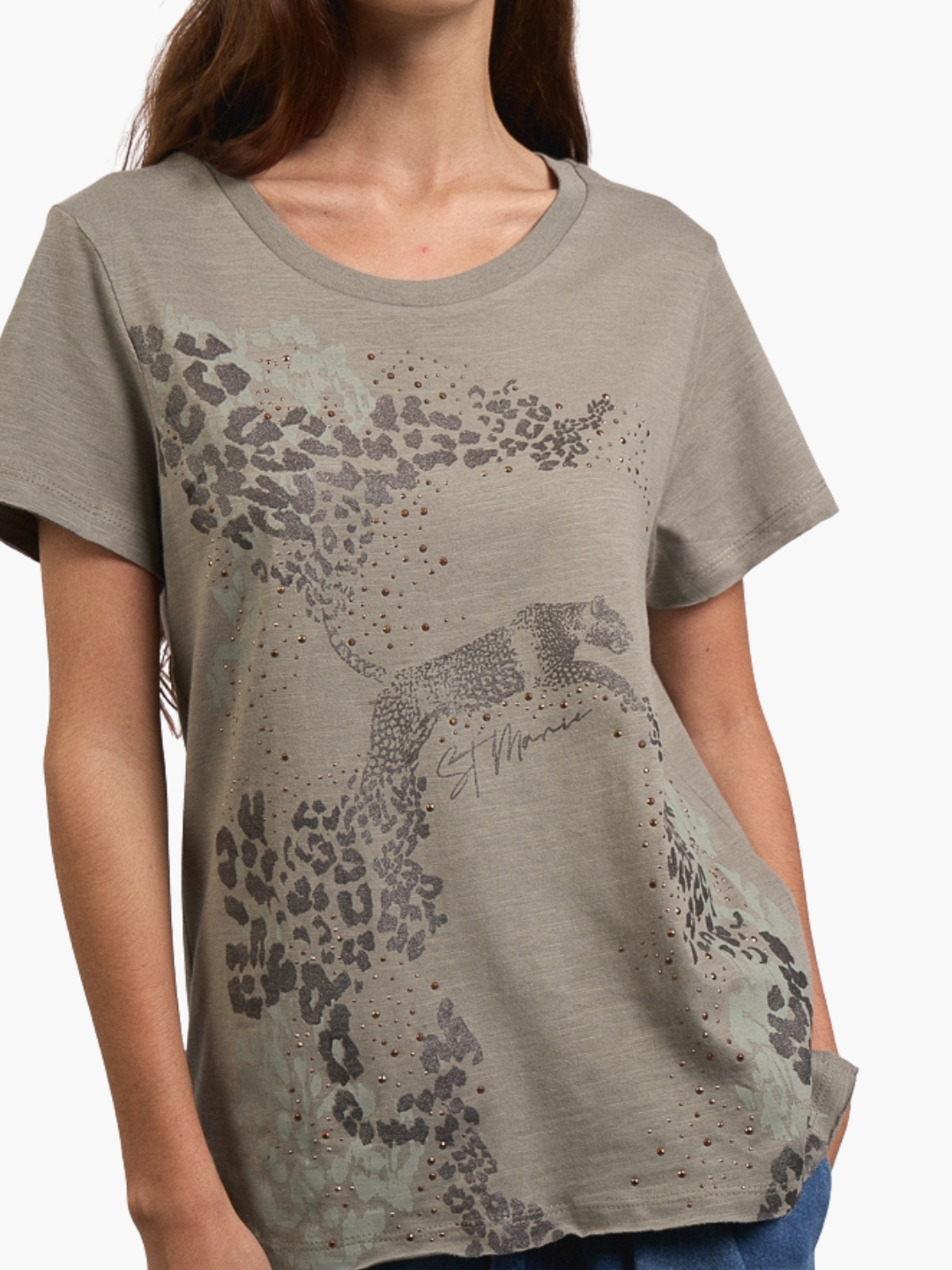 Remera de flame, escote y manga clásica, con estampa personalizada y detalle de hotfix.Composición: 100% Algodón. Color VerdeMARCA: ST. MARIE