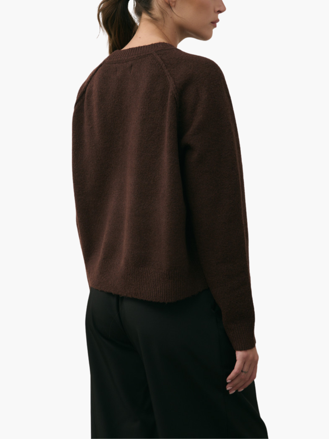 Sweater cuello redondo confeccionado en tejido acrílico, con mangas ranglán y costuras exteriores visibles que aportan un detalle moderno y descontracturado. De calce cómodo, ideal para sumar abrigo y estilo a looks cotidianos.