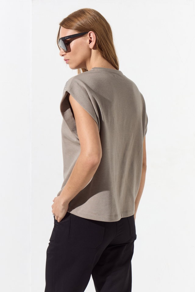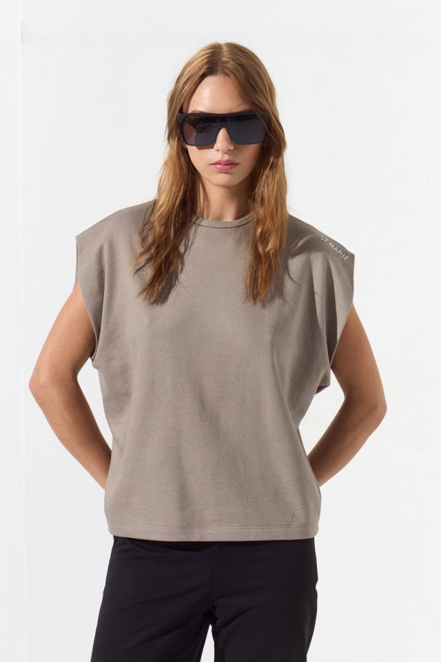 Buzo de rústico liviano sin mangas. Su escote es clásico y su corte es tipo oversize. A modo detalle lleva un tag plateado en el hombro con identificación de marca. Composición: 100% Algodón